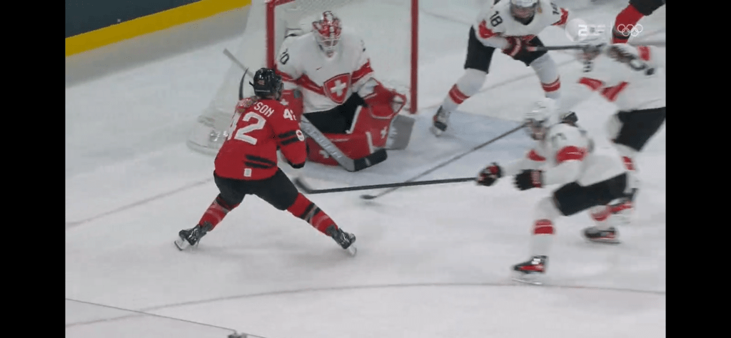 Und mittendrin die Kanada Frauen Eishockeynationalmannschaft gegen die Schweizer Frauen Eishockeynationalmannschaft.